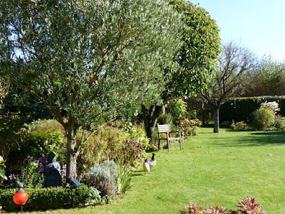 Nous voici de retour après une belle semaine de vacance sous le soleil de Grèce à Rhodes. Notre jardin n’a pas trop souffert des épisodes de pluies intenses en seine et marne. Aujourd’hui soleil, que du bonheur pour les plantes car les massifs sont encore bien humides. L'automne est maintenant bien installé. Dans des tonalités d'ombres et de lumières, les végétaux se parent de couleurs flamboyantes. Le soleil d’octobre illumine les feuillages et apporte encore quelques belles floraisons. Il sublime le jardin et lui confère un effet naturel tout en douceur.